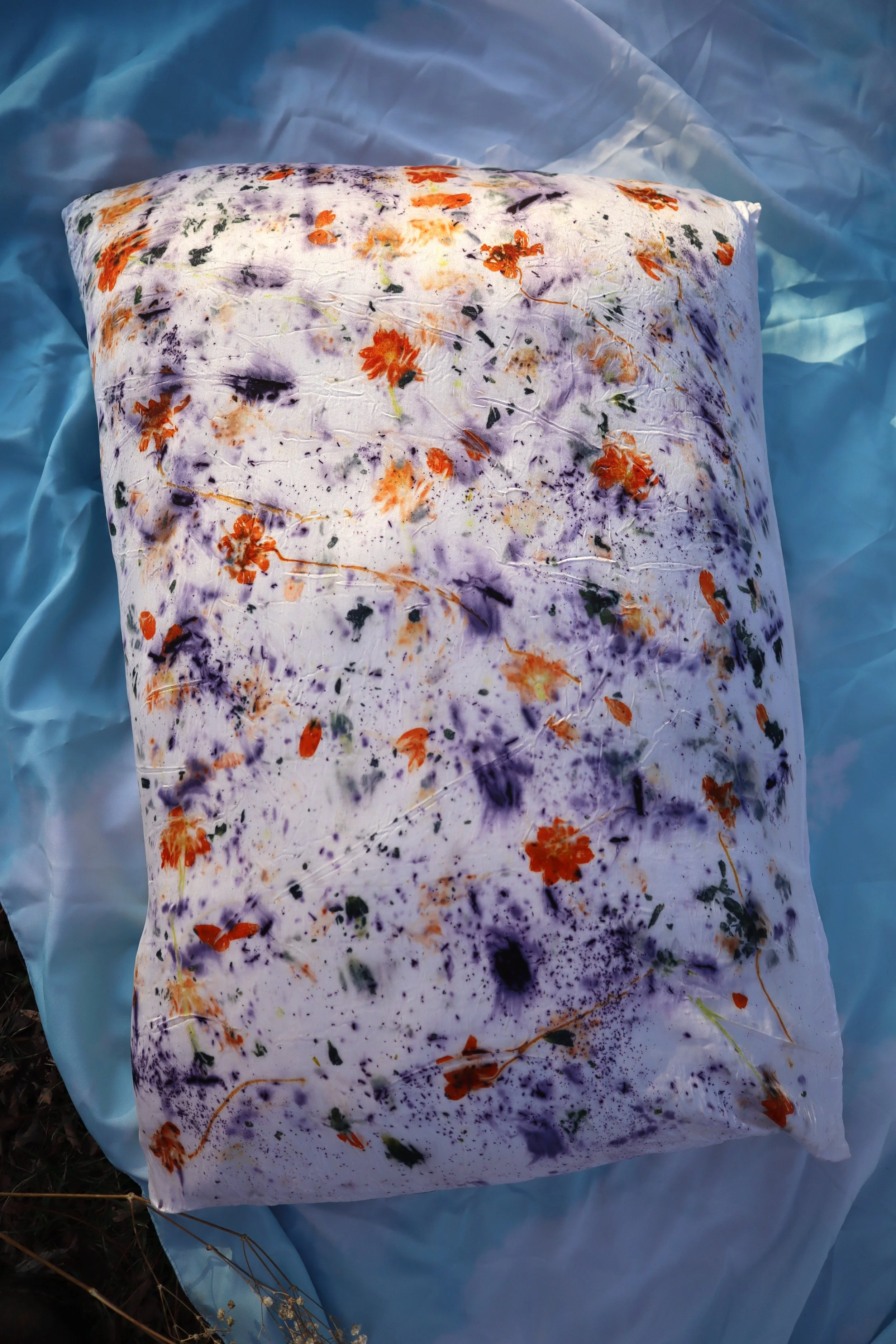 Image 1 of 5 Image 2 of 5 Image 3 of 5 Image 4 of 5 Image 5 of 5 Floral Silk Pillowcase Sale Price: $75.00 Original Price: $85.00 sold out 100% Mulberry Silk. Dyed with Cosmos, Coreopsis, and Logwood.Standard Size. OEKO-TEX® certified. Sold Out Added! 100% Mulberry Silk. Dyed with Cosmos, Coreopsis, and Logwood.Standard Size. OEKO-TEX® certified.