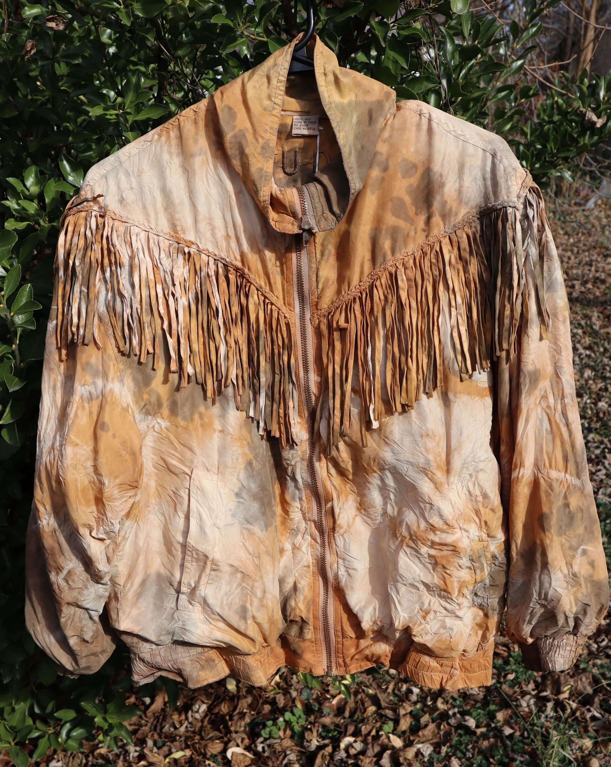 Naturally dyed with Cutch and Iron. 100% silk, vintage jacket.